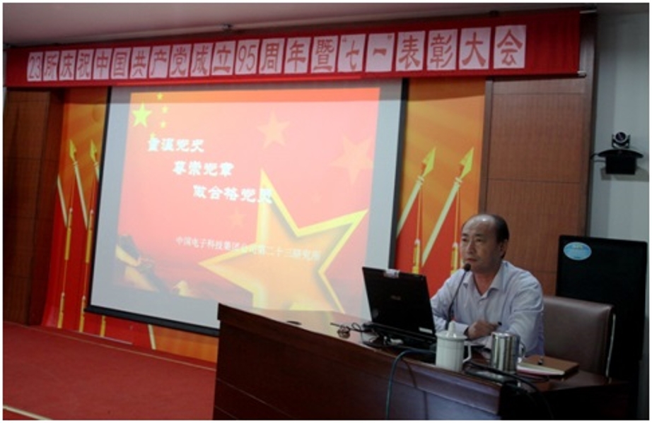 7月4日,在23所庆祝中国共产党成立95周年暨“七一”表彰大会后,又邀请了劳模等先进人物讲党课。首先是中国电科集团公司首席专家、全国劳动模范、集团公司“七好”党员陈小宝同志上党课,题目是《中国的梦想与我们的跑道》。陈小宝首先分享了自己对“两学一做”的认识和学习感受,并分析了在“十八大”后的“创新驱动发展战略”背景下,我们这样的研究所在技术创新方面该做些什么,我们党员又应该在这过程中做些什么,报告高屋建瓴、将国家利益、所的发展、个人事业以及梦想紧紧结合在一起,体现了一名优秀共产党员的信仰和情怀。