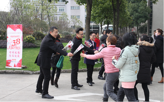 3月8日早上,由2017年度双文明部门负责人组成的献花团,迎着初春的阳光,向姐妹们赠送鲜艳芬芳的玫瑰花和精心制作的贺卡,祝愿铿锵玫瑰在2018年继续发挥好“半边天”作用,绽放更加绚丽的光彩;同时发起“2018撸起袖子加油干”的倡议,号召大家牢记中国电科大国重器使命担当,为完成我所全年目标任务努力拼搏!