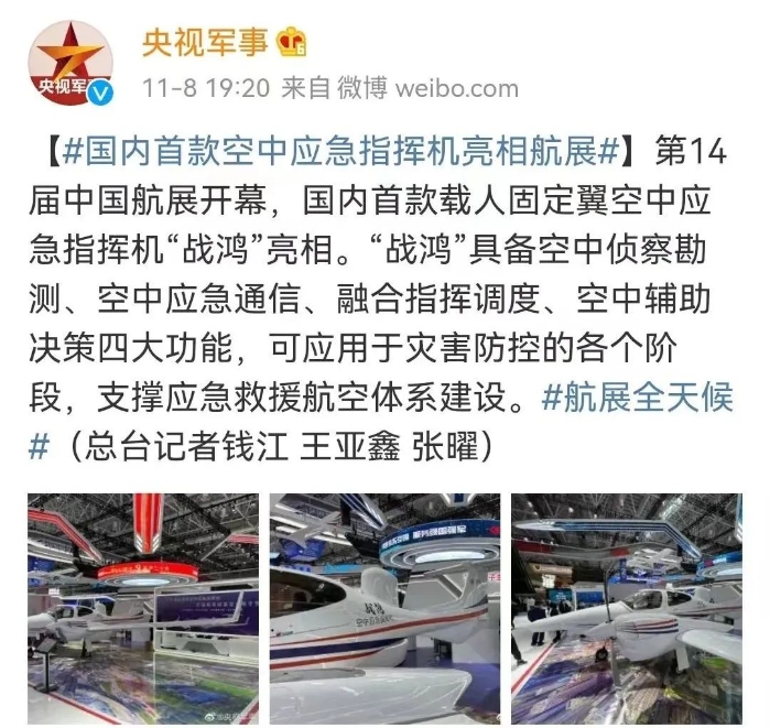 央广网推出了《打造“天罗地网”!“天穹”综合反无人机作战体系亮相航展》《中国电科展现网信体系新成果》。
