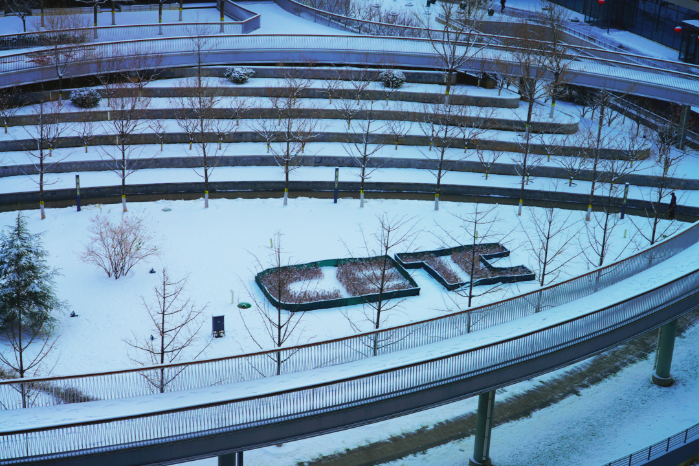 熟悉的办公楼披上了白色纱衣